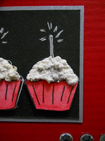 This one was for the sketch challenge and a little close-up: The yummy cupcakes are from Gingerloft.